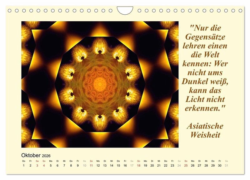 Wunderschöne Mandalas und asiatische Weisheiten laden zum Entspannen ein. Die meditativen Bilder und weisen Zitate sind Wellness für Körper und Seele.