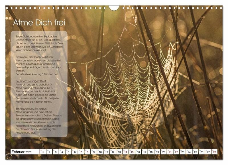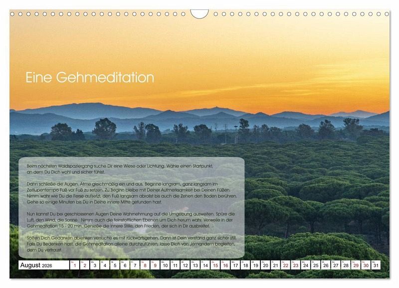 Wunderschöne Landschaftsfotos aus Andalusien gepaart mit leichten Achtsamkeits- und Meditationsübungen begleiten Dich durch das ganze Jahr. Mit ihnen findest Du zurück in innere Gelassenheit, beruhigst Deinen Geist und reduzierst Stress. Die Übungen sind leicht in den Alltag zu integrieren. Lasse Dich verzaubern.