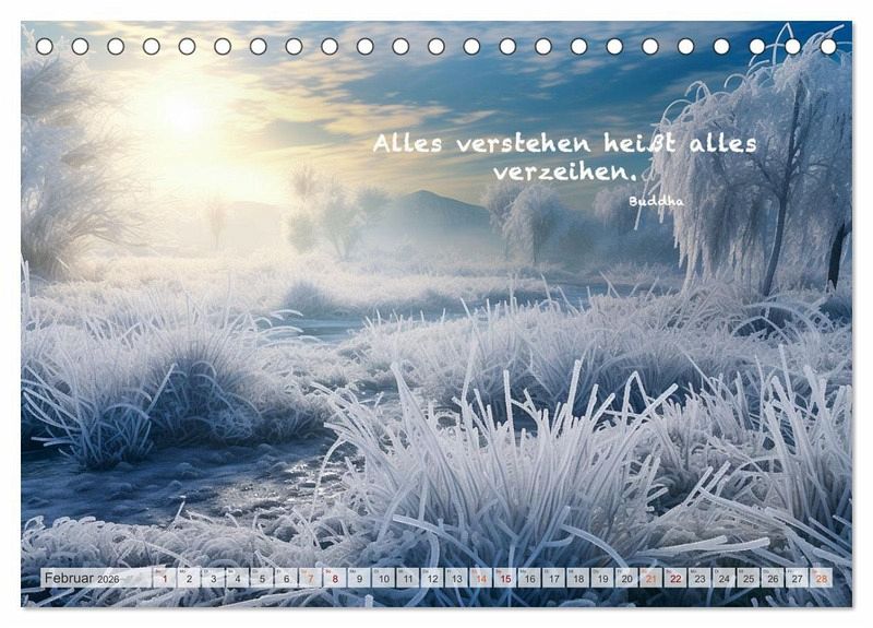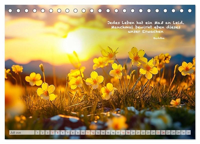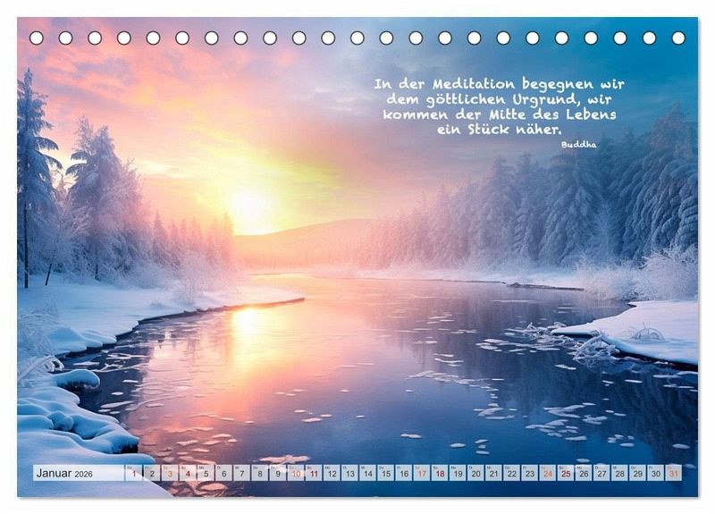 Die Bilder des Fotografen Dirk Meutzner entfalten den ganzen Zauber der Natur und die Ruhe unserer Welt. Dieser wunderschöne Kalender enthält nachdenkliche und weiße Sprüche von Buddha, damit können Sie ihren inneren Frieden finden und wunderbar meditieren. Dieser Kalender eignet sich auch hervorragend als Geschenk für Ihre Freunde und Verwandten.