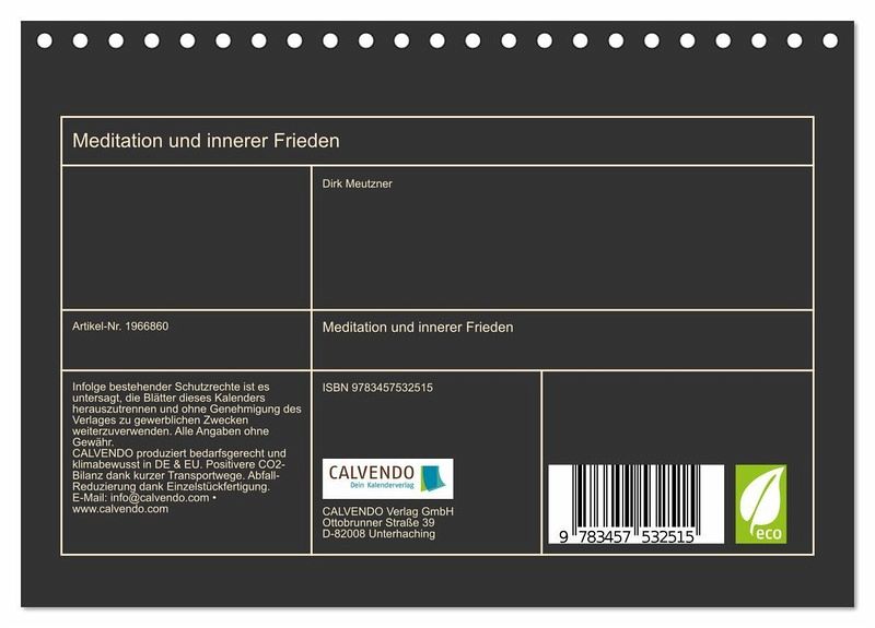 QUALITÄT - Hochwertiger Fotokalender mit 12 wunderschönen Motiven auf lichtbeständigem Bilderdruckpapier, robuste Spiralbindung.NACHHALTIG - deutliche Abfallreduzierung durch bedarfsgerechte Einzelstückfertigung, umweltfreundliches FSC-zertifiziertes Papier, Produktion in Deutschland, klimabewusste Logistik.PERFEKTES GESCHENK - Kalender für Freunde und Familie, für Kinder und Erwachsene, jung und alt, zu Weihnachten, Geburtstag oder zwischendurch.VIELFALT - Bildkalender in verschiedenen Formaten, z.B. DIN A5, DIN A4, DIN A3 sowie DIN A2. Ob Naturmotiv, Gemälde oder Fotos, ideal für ein persönliches Wohlfühlambiente.Endlich hast Du es gefunden, wundervolle Bilder, Sinnsprüche und inneren Frieden. von Autor(in): Dirk Meutzner