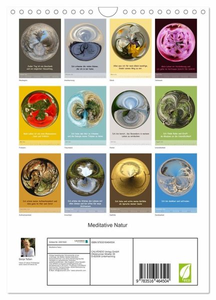 QUALITÄT - Hochwertiger Fotokalender mit 12 wunderschönen Motiven auf lichtbeständigem Bilderdruckpapier, robuste Spiralbindung mit Aufhängebügel.NACHHALTIG - deutliche Abfallreduzierung durch bedarfsgerechte Einzelstückfertigung, umweltfreundliches FSC-zertifiziertes Papier, Produktion in Deutschland, klimabewusste Logistik.PERFEKTES GESCHENK - Kalender für Freunde und Familie, für Kinder und Erwachsene, jung und alt, zu Weihnachten, Geburtstag oder zwischendurch.VIELFALT - Bildkalender in verschiedenen Formaten, z.B. DIN A5, DIN A4, DIN A3 sowie DIN A2. Ob Naturmotiv, Gemälde oder Fotos, ideal für ein persönliches Wohlfühlambiente.Digital bearbeitete Naturaufnahmen zum Meditieren und Träumen von Autor(in): Sonja Teßen