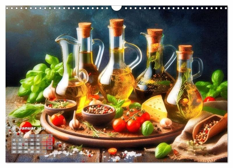 Für Genießer, Feinschmecker und alle, die mediterrane Lebensfreude lieben. Ein Kalender, der inspiriert, nicht nur fürs Auge, sondern auch für den Gaumen. Der Inhalt wurde mit Hilfe von KI erstellt.