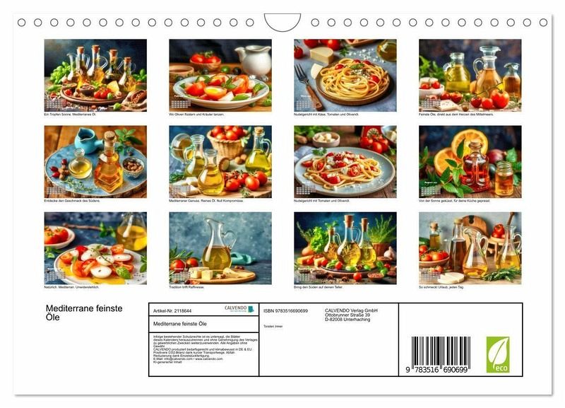Für Genießer, Feinschmecker und alle, die mediterrane Lebensfreude lieben. Ein Kalender, der inspiriert, nicht nur fürs Auge, sondern auch für den Gaumen. Der Inhalt wurde mit Hilfe von KI erstellt.