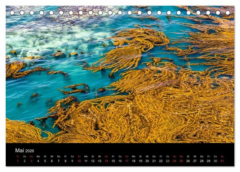 Goldene Sonnenuntergänge am Strand, dramatische Küstenlinien oder bunte Wasserpflanzen. Rund um das Meer finden sich die faszinierendsten Naturlandschaften. Der Kalender nimmt Sie mit auf eine Entdeckungsreise zur Nordsee, Ostsee und zum Pazifik.