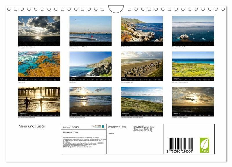 QUALITÄT - Hochwertiger Fotokalender mit 12 wunderschönen Motiven auf lichtbeständigem Bilderdruckpapier, robuste Spiralbindung mit Aufhängebügel.NACHHALTIG - deutliche Abfallreduzierung durch bedarfsgerechte Einzelstückfertigung, umweltfreundliches FSC-zertifiziertes Papier, Produktion in Deutschland, klimabewusste Logistik.PERFEKTES GESCHENK - Kalender für Freunde und Familie, für Kinder und Erwachsene, jung und alt, zu Weihnachten, Geburtstag oder zwischendurch.VIELFALT - Bildkalender in verschiedenen Formaten, z.B. DIN A5, DIN A4, DIN A3 sowie DIN A2. Ob Naturmotiv, Gemälde oder Fotos, ideal für ein persönliches Wohlfühlambiente.Monatskalender mit faszinierenden Bildern von Meer und Küste rund um den Globus von Autor(in): Franz von Lucke