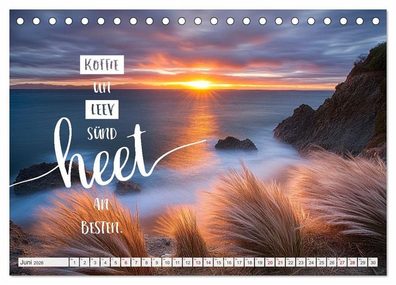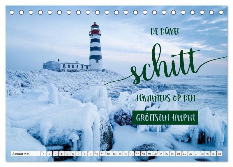 Dieser Kalender ist eine Hommage an das Meer, den Wind und die Weite der Küste; begleitet von plattdeutschen Sprüchen, die mal zum Schmunzeln, mal zum Innehalten einladen. Maritime Motive wie Leuchttürme, Möwen, Boote oder Wellen schaffen zu jedem Spruch das passende Gefühl von Freiheit, Sehnsucht und heimatlicher Verbundenheit. Ideal für alle, die den Norden lieben und ein Herz für Dialekte haben. Mit Küstenliebe, Herz und KI erstellt.