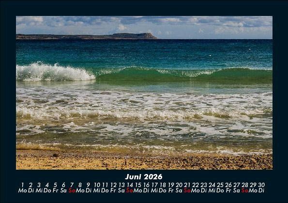 Meereslandschaft 2026 Motivkalender DIN A5 Dieser Kalender begleitet sie mit schönen und variationsreichen Bildern von Meerlandschaften über das ganze Jahr. Vero-Kalender erhalten Sie mit Motiven aus den verschiedensten Themenbereichen wie Natur, Blumen und Landschaft, Tierwelt, Architektur, Reise und Urlaub, Technik, Automobil und Eisenbahn, Emotionen, Sport und Musik. Gedruckt werden die Monats-Kalender aus dem Vero Verlag auf hochwertigem Kalenderbogen in Premium-Qualität und verschiedenen Größen. Die Vielfältigkeit der Motive unserer Foto-Kalender ist dank der Zusammenarbeit mit kreativen Fotografen möglich.