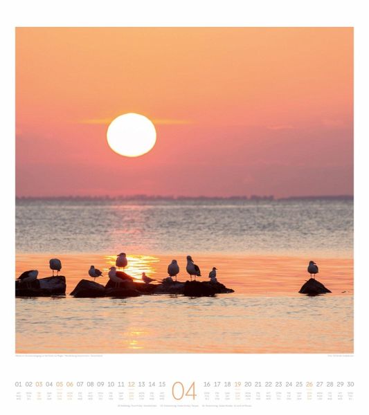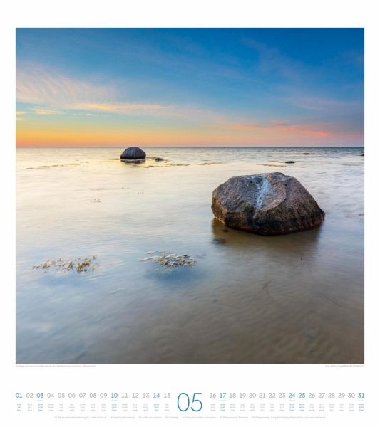 Tauchen Sie ein in die beruhigende Schönheit der Küstenlandschaften mit unserem Kalender "Meeresstille". Genießen Sie den zarten Minimalismus der Motive und die malerische Vielfalt der maritimen Natur aus Sicht deutscher Inseln und Küsten. Halten Sie inne und lassen Sie sich von der friedlichen Atmosphäre des Wassers inspirieren. Entdecken Sie Nordsee und Ostsee in ungewohnt reduzierten Kompositionen und spüren Sie diese ganz besondere Ruhe, die sich während eines ungestörten Tages am Meer einstellt.