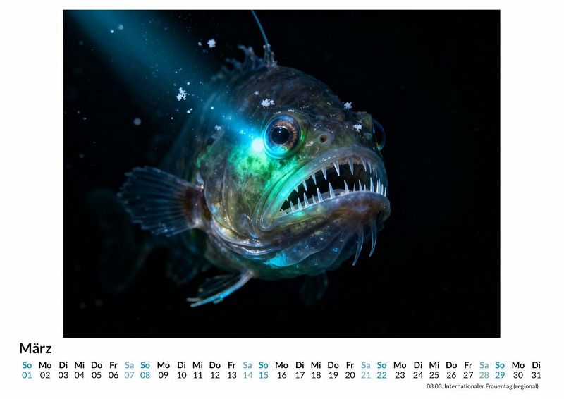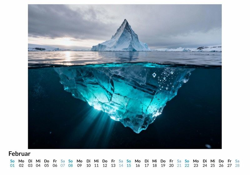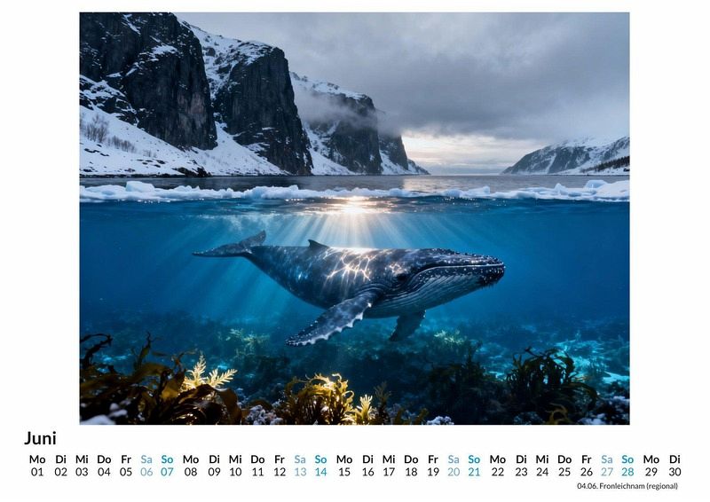Einleitung Die Ozeane bedecken den größten Teil unseres Planeten, doch ihre Tiefen bergen noch immer unzählige Geheimnisse. Der Kalender "Meereswelten & Ozeane" öffnet ein Fenster zu diesen verborgenen Reichen und zeigt die unermessliche Weite der See. Er fängt die Stimmungen des Wassers ein, von der sonnendurchfluteten Oberfläche bis zu den geheimnisvollen Abgründen. Dieser Kalender ist eine passende Wahl für: * Liebhaber der Meeresbiologie und maritimer Landschaften. * Menschen, die eine Faszination für die unentdeckten Winkel der Erde hegen. * Alle, die sich nach der beruhigenden Präsenz des Wassers in ihren Räumen sehnen. Kurzer beschreibender Text Jeder Monat enthüllt eine neue Szene, die den Betrachter an einen anderen Ort führt. Von leuchtenden Korallenriffen, in denen sich farbenfrohe Fische bewegen, bis zu den stillen, dunklen Zonen der Tiefsee, bewohnt von biolumineszenten Kreaturen. Die Motive zeigen auch die ruhige Oberfläche des offenen Ozeans bei Sonnenaufgang oder im Mondlicht. Diese Visionen wurden durch komplexe Rechenprozesse erschaffen, um Welten zu visualisieren, die oft jenseits der Reichweite einer Kamera liegen und die Grenzen der Vorstellungskraft berühren. Was der Kalender bietet: * Zwölf Monatsmotive aus der Welt der Ozeane. * Ein praktisches Kalendarium für die Jahresplanung. * Eine visuelle Reise durch fantastische und realistische Meereslandschaften. Zusammenfassung und motivierende Aufforderung Der Kalender "Meereswelten & Ozeane" ist eine Begleitung durch das Jahr, die an die Schönheit und das Geheimnis unter der Wasseroberfläche erinnert. Eine Einladung, die Vielfalt der Ozeane Monat für Monat zu betrachten und sich von der Kraft des Wassers durch das Jahr tragen zu lassen.
