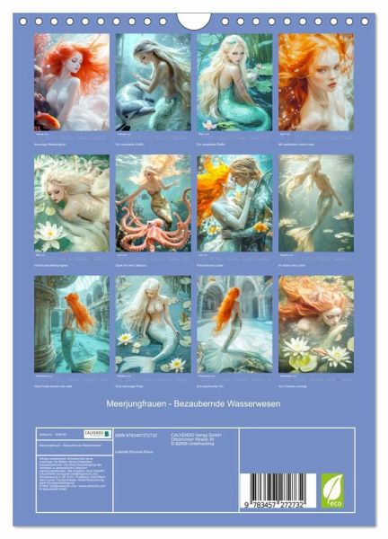 QUALITÄT - Hochwertiger Fotokalender mit 12 wunderschönen Motiven auf lichtbeständigem Bilderdruckpapier, robuste Spiralbindung mit Aufhängebügel.NACHHALTIG - deutliche Abfallreduzierung durch bedarfsgerechte Einzelstückfertigung, umweltfreundliches FSC-zertifiziertes Papier, Produktion in Deutschland, klimabewusste Logistik.PERFEKTES GESCHENK - Kalender für Freunde und Familie, für Kinder und Erwachsene, jung und alt, zu Weihnachten, Geburtstag oder zwischendurch.VIELFALT - Bildkalender in verschiedenen Formaten, z.B. DIN A5, DIN A4, DIN A3 sowie DIN A2. Ob Naturmotiv, Gemälde oder Fotos, ideal für ein persönliches Wohlfühlambiente.Schönheit und Anmut der Meerjungfrauen von Autor(in): Liselotte Brunner-Klaus