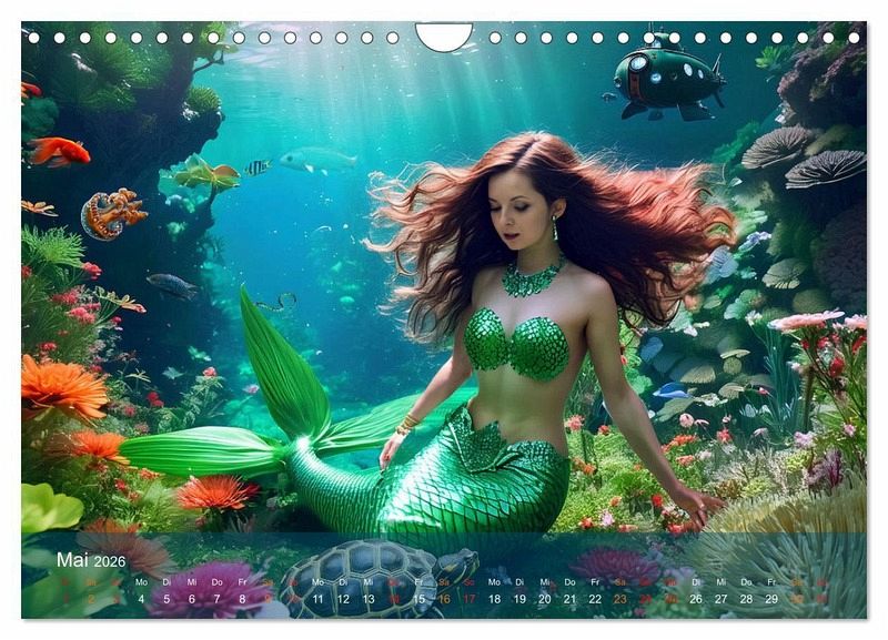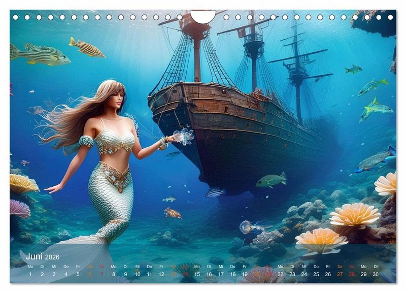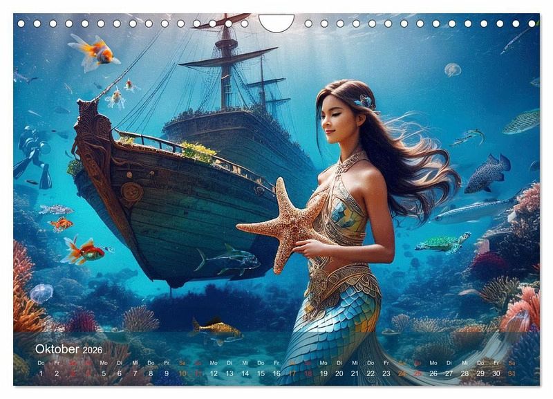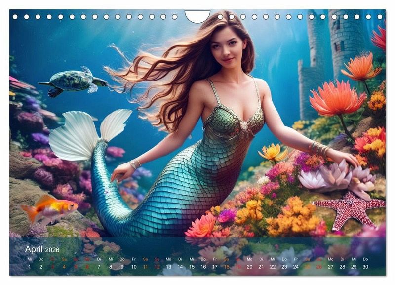 Tauche ein in die magische Welt der Meerjungfrauen mit unserem exklusiven Kalender. Dieses Projekt wurde mit Hilfe modernster Künstlicher Intelligenz (KI) erstellt, um das Leben der geheimnisvollen Wesen auf einzigartige Weise darzustellen. Erlebe die atemberaubende Kulisse von verborgenen Burgruinen und Schiffswracks, die die Geschichten der vergangenen Zeiten erzählen.