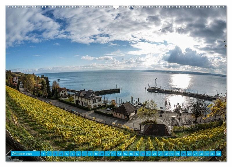 Oktober: Blick von den Weinhängen auf den Meersburger Hafen