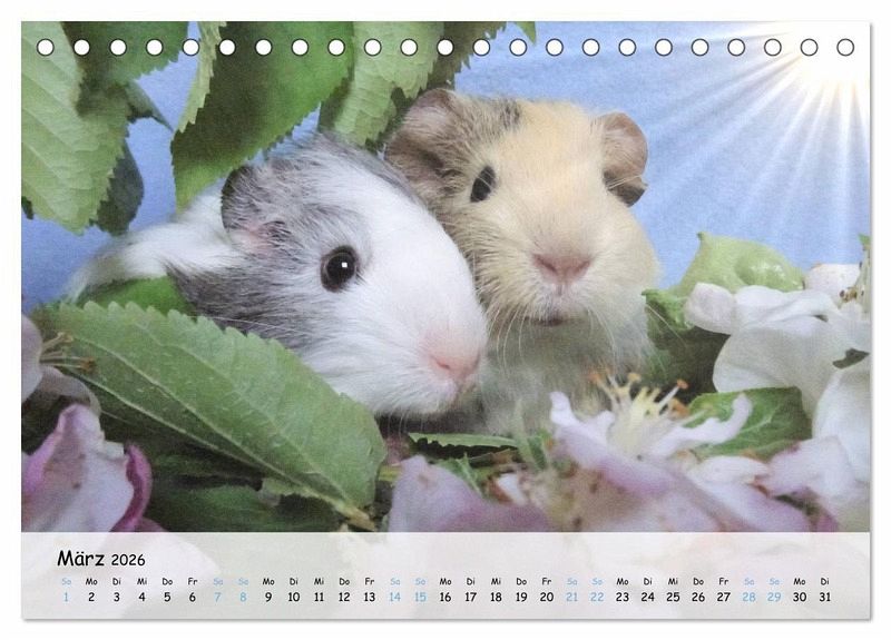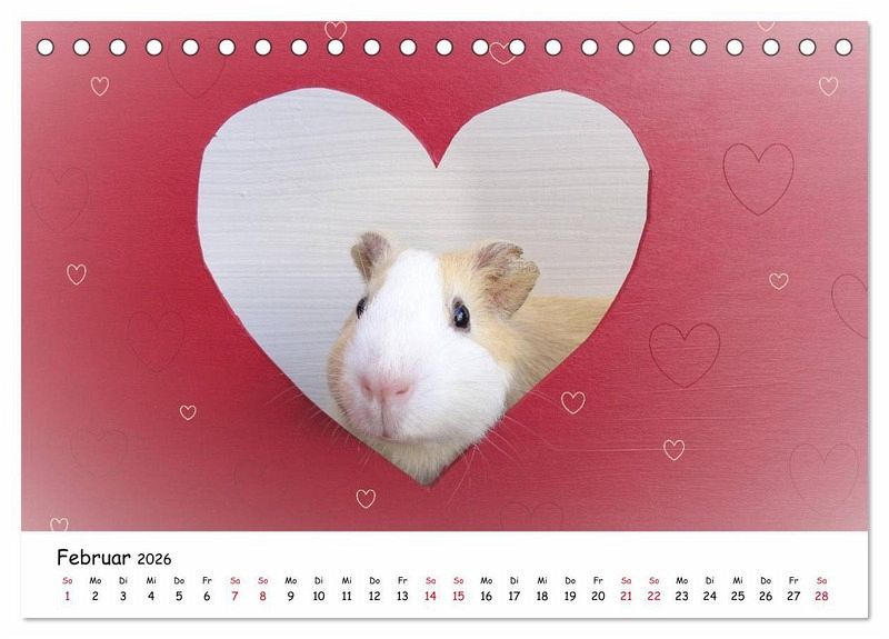 In diesem Kalender befinden sich Bilder von Kurzhaar, Sheltie und Coronet Meerschweinchen von ihrer entzückenden Seite, die Sie das Jahr über begeistern werden. Das Kalendarium ist auf weißem Hintergrund gedruckt. So haben sie die Möglichkeit sich kleine Notizen oder Termine einzutragen.