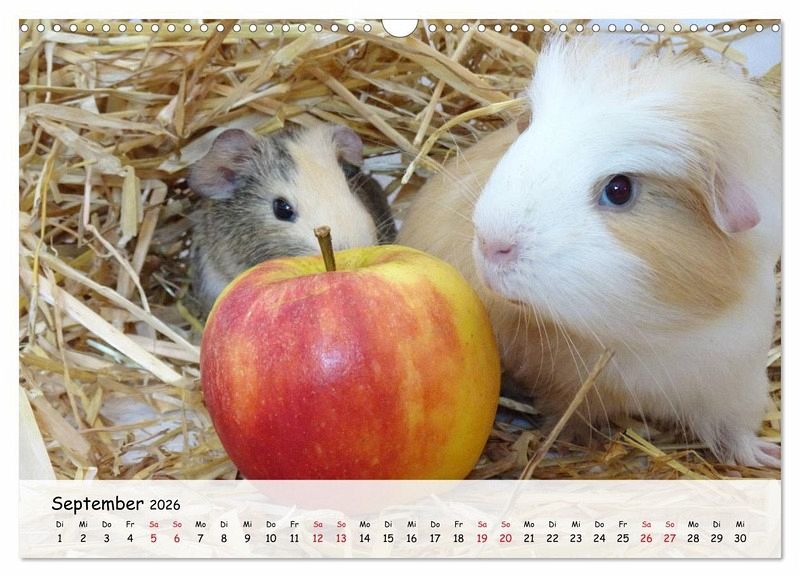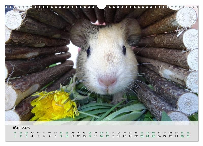 In diesem Kalender befinden sich Bilder von Kurzhaar, Sheltie und Coronet Meerschweinchen von ihrer entzückenden Seite, die Sie das Jahr über begeistern werden. Das Kalendarium ist auf weißem Hintergrund gedruckt. So haben sie die Möglichkeit sich kleine Notizen oder Termine einzutragen.