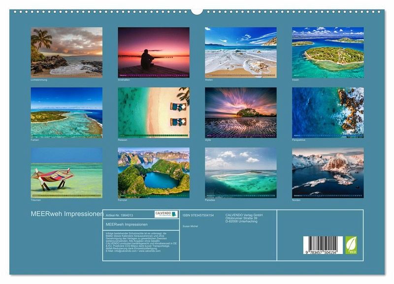 PREMIUM-LINIE - Brillanter Fotokalender mit 12 wunderschönen Motiven, Kunstdruck in Hochglanz in Museumsqualität.QUALITÄT - edle Materialien, stabile Rückwand mit 2 innovativen Einstecktaschen für eine optimale Präsentation an der Wand.NACHHALTIG - deutliche Abfallreduzierung durch bedarfsgerechte Einzelstückfertigung, umweltfreundliches FSC-zertifiziertes Papier, Produktion in Deutschland, klimabewusste Logistik.PERFEKTES GESCHENK - Kalender für Freunde und Familie, für Kinder und Erwachsene, jung und alt, zu Weihnachten, Geburtstag oder zwischendurch.Das Meer als unerschöpfliche Inspirationsquelle von Autor(in): Susan Michel