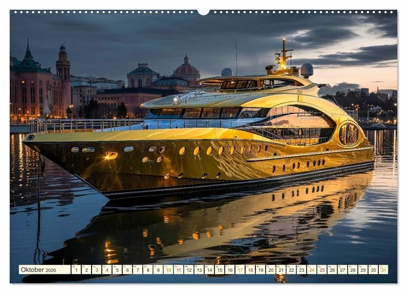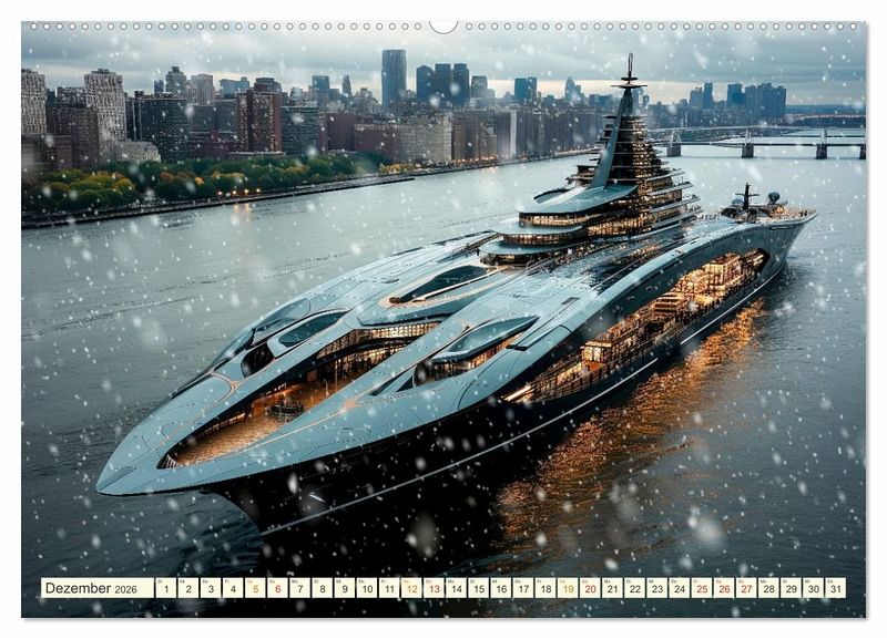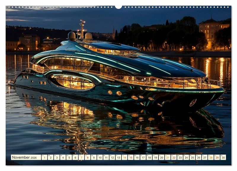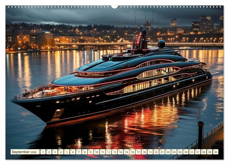 Entdecken Sie eine Welt voller Luxus und Eleganz mit diesem Kalender mit Mega Yachten, die die Essenz der nächsten Generation verkörpern. Lassen Sie sich verzaubern von futuristischem Design und zeitlosem Charme dieser wunderbaren Schiffe. Der Fotokünstler Peter Roder hat beeindruckende KI-Bilder von außergewöhnlichen Yachten gestaltet. Begeben Sie sich mit diesem Kalender auf eine einjährige Reise voller beeindruckender Yachtträume.