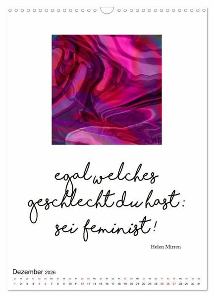 Dieser Kalender ist eine Hommage an Frauen, die ihr Leben selbst bestimmt gegangen sind und noch gehen. Ihr Einsatz für mehr Geschlechtergerechtigkeit und Menschenrechte machen sie zum Vorbild all derjenigen, die sich ebenfalls auf diesem Weg befinden. Zitate dieser Frauen machen uns Mut, stärken auch unbequeme Haltungen und zeigen die uns eigene Macht, die im solidarischen Handeln für eine gerechtere Welt liegt.