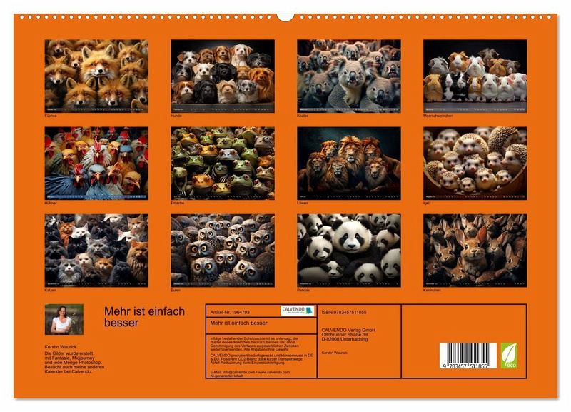 Möchte man nicht von ganz viel knuddeligem Fell umgeben sein? Von einem ganzen Haufen niedlicher Welpen, flauschiger Katzen oder drollig guckenden Eulen? Dieser Kalender bringt zumindest eine Ahnung von einem Knuddel-Overflow. Manche Bilder mögen nicht ganz der Ästhetik eines Fotos entsprechen, sind aber einfach zu drollig, um sie wegzulassen. Genießt den Kalender ein ganzes Jahr mit seinem Humor, seiner Flauschigkeit und seinen Ideen.