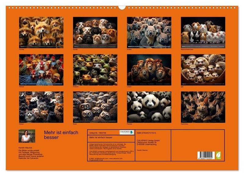 QUALITÄT - Hochwertiger Fotokalender mit 12 wunderschönen Motiven auf lichtbeständigem Bilderdruckpapier, robuste Spiralbindung mit Aufhängebügel.NACHHALTIG - deutliche Abfallreduzierung durch bedarfsgerechte Einzelstückfertigung, umweltfreundliches FSC-zertifiziertes Papier, Produktion in Deutschland, klimabewusste Logistik.PERFEKTES GESCHENK - Kalender für Freunde und Familie, für Kinder und Erwachsene, jung und alt, zu Weihnachten, Geburtstag oder zwischendurch.VIELFALT - Bildkalender in verschiedenen Formaten, z.B. DIN A5, DIN A4, DIN A3 sowie DIN A2. Ob Naturmotiv, Gemälde oder Fotos, ideal für ein persönliches Wohlfühlambiente.Von geliebten Tieren kann man nicht genug haben von Autor(in): Kerstin Waurick