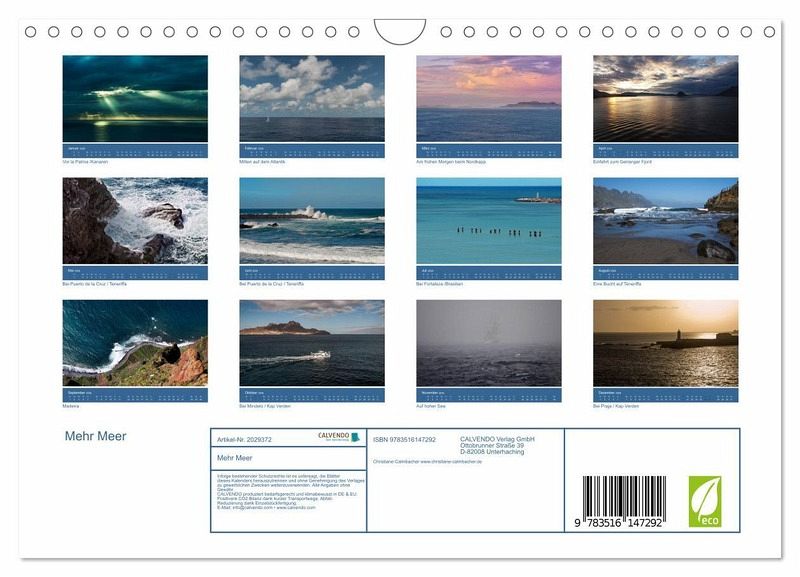 QUALITÄT - Hochwertiger Fotokalender mit 12 wunderschönen Motiven auf lichtbeständigem Bilderdruckpapier, robuste Spiralbindung mit Aufhängebügel.NACHHALTIG - deutliche Abfallreduzierung durch bedarfsgerechte Einzelstückfertigung, umweltfreundliches FSC-zertifiziertes Papier, Produktion in Deutschland, klimabewusste Logistik.PERFEKTES GESCHENK - Kalender für Freunde und Familie, für Kinder und Erwachsene, jung und alt, zu Weihnachten, Geburtstag oder zwischendurch.VIELFALT - Bildkalender in verschiedenen Formaten, z.B. DIN A5, DIN A4, DIN A3 sowie DIN A2. Ob Naturmotiv, Gemälde oder Fotos, ideal für ein persönliches Wohlfühlambiente.Für alle, die die Meere lieben, gibt es hier dreizehn Bilder der Meere. von Autor(in): Christiane Calmbacher
