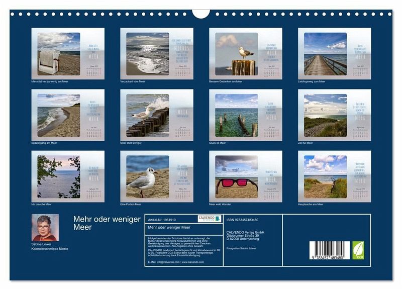 QUALITÄT - Hochwertiger Fotokalender mit 12 wunderschönen Motiven auf lichtbeständigem Bilderdruckpapier, robuste Spiralbindung mit Aufhängebügel.NACHHALTIG - deutliche Abfallreduzierung durch bedarfsgerechte Einzelstückfertigung, umweltfreundliches FSC-zertifiziertes Papier, Produktion in Deutschland, klimabewusste Logistik.PERFEKTES GESCHENK - Kalender für Freunde und Familie, für Kinder und Erwachsene, jung und alt, zu Weihnachten, Geburtstag oder zwischendurch.VIELFALT - Bildkalender in verschiedenen Formaten, z.B. DIN A5, DIN A4, DIN A3 sowie DIN A2. Ob Naturmotiv, Gemälde oder Fotos, ideal für ein persönliches Wohlfühlambiente.Fotos vom Lieblingsmeer und Lieblingssprüche von Autor(in): Sabine Löwer