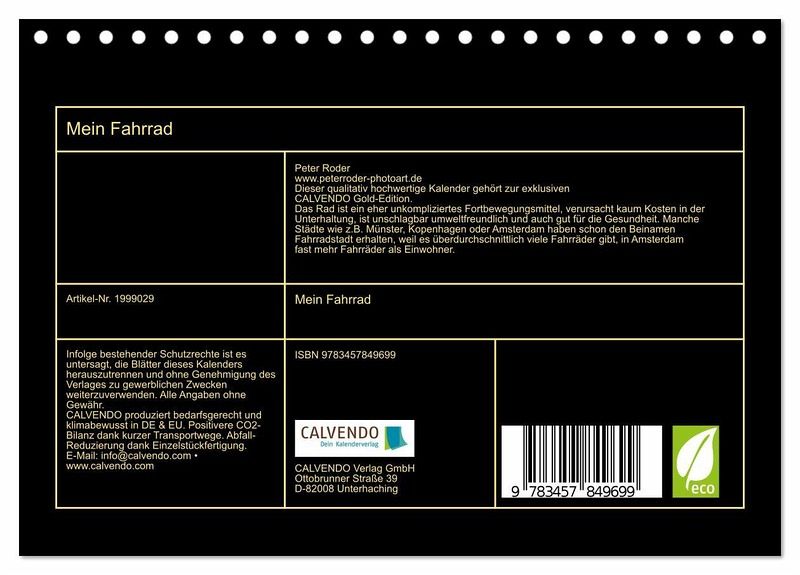 QUALITÄT - Hochwertiger Fotokalender mit 12 wunderschönen Motiven auf lichtbeständigem Bilderdruckpapier, robuste Spiralbindung.NACHHALTIG - deutliche Abfallreduzierung durch bedarfsgerechte Einzelstückfertigung, umweltfreundliches FSC-zertifiziertes Papier, Produktion in Deutschland, klimabewusste Logistik.PERFEKTES GESCHENK - Kalender für Freunde und Familie, für Kinder und Erwachsene, jung und alt, zu Weihnachten, Geburtstag oder zwischendurch.VIELFALT - Bildkalender in verschiedenen Formaten, z.B. DIN A5, DIN A4, DIN A3 sowie DIN A2. Ob Naturmotiv, Gemälde oder Fotos, ideal für ein persönliches Wohlfühlambiente.Überall gegenwärtig und es werden immer mehr - Fahrräder von Autor(in): Peter Roder