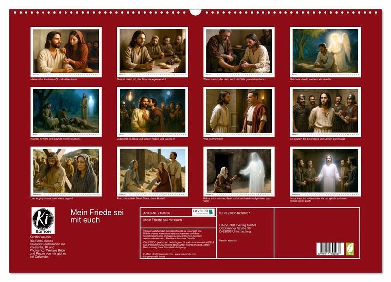 Dieser Kalender beginnt mit der Salbung in Bethanien - ein stilles Zeichen der Hingabe, das den Weg Jesu durch die Heilige Woche eröffnet. Mithilfe von KI entstanden Bilder, die zwischen fotorealistischer Klarheit und gemäldeartiger Tiefe wechseln und so eine besondere Atmosphäre schaffen. Szene für Szene entfaltet sich der Weg vom Abendmahl über das Kreuz bis hin zur Auferstehung. Ein Begleiter durchs Jahr, der Glauben und moderne Bildkunst miteinander verbindet und zum stillen Betrachten einlädt.