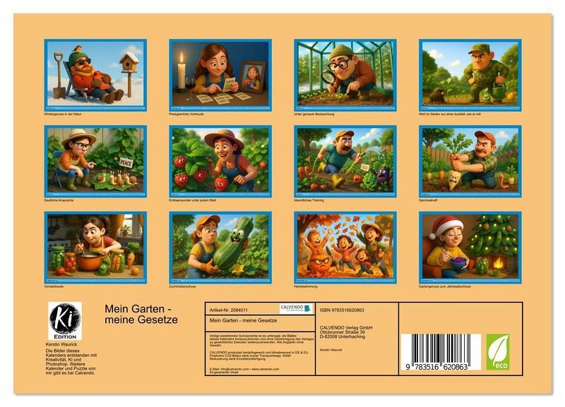 Willkommen in einer Welt, in der Gärtner das Sagen haben - liebevoll-chaotisch, grünverrückt und herrlich eigenwillig. Dieser humorvolle Kalender zeigt schräge, charmante Gartenszenen, erschaffen mit Hilfe künstlicher Intelligenz. Ob Schnecken-Schlachten, Gieß-Gefechte oder Gemüse-Rituale - hier gelten eigene Gesetze. Perfekt für alle, die ihren Garten lieben und gern über sich selbst lachen.
