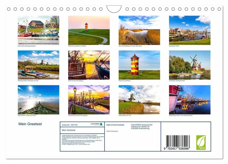 QUALITÄT - Hochwertiger Fotokalender mit 12 wunderschönen Motiven auf lichtbeständigem Bilderdruckpapier, robuste Spiralbindung mit Aufhängebügel.NACHHALTIG - deutliche Abfallreduzierung durch bedarfsgerechte Einzelstückfertigung, umweltfreundliches FSC-zertifiziertes Papier, Produktion in Deutschland, klimabewusste Logistik.PERFEKTES GESCHENK - Kalender für Freunde und Familie, für Kinder und Erwachsene, jung und alt, zu Weihnachten, Geburtstag oder zwischendurch.VIELFALT - Bildkalender in verschiedenen Formaten, z.B. DIN A5, DIN A4, DIN A3 sowie DIN A2. Ob Naturmotiv, Gemälde oder Fotos, ideal für ein persönliches Wohlfühlambiente.Maritime Bilder von Greetsiel und drumherum von Autor(in): Andrea Dreegmeyer