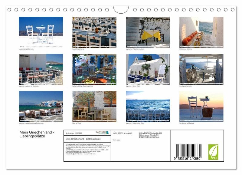 QUALITÄT - Hochwertiger Fotokalender mit 12 wunderschönen Motiven auf lichtbeständigem Bilderdruckpapier, robuste Spiralbindung mit Aufhängebügel.NACHHALTIG - deutliche Abfallreduzierung durch bedarfsgerechte Einzelstückfertigung, umweltfreundliches FSC-zertifiziertes Papier, Produktion in Deutschland, klimabewusste Logistik.PERFEKTES GESCHENK - Kalender für Freunde und Familie, für Kinder und Erwachsene, jung und alt, zu Weihnachten, Geburtstag oder zwischendurch.VIELFALT - Bildkalender in verschiedenen Formaten, z.B. DIN A5, DIN A4, DIN A3 sowie DIN A2. Ob Naturmotiv, Gemälde oder Fotos, ideal für ein persönliches Wohlfühlambiente.Eine Bilderreise zu den lauschigsten (Sitz-)Plätzen Griechenlands von Autor(in): Katrin Manz