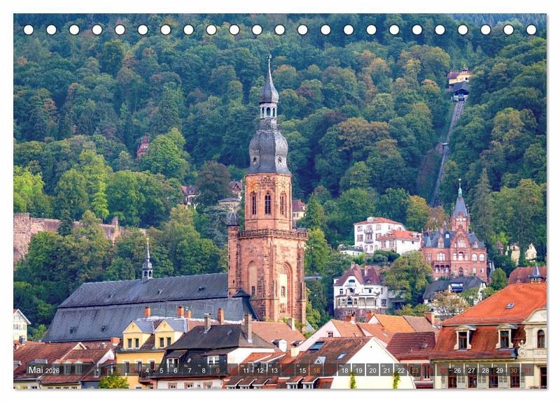 Mai: Heidelberg Heiliggeistkirche und Blick auf die Bergbahn