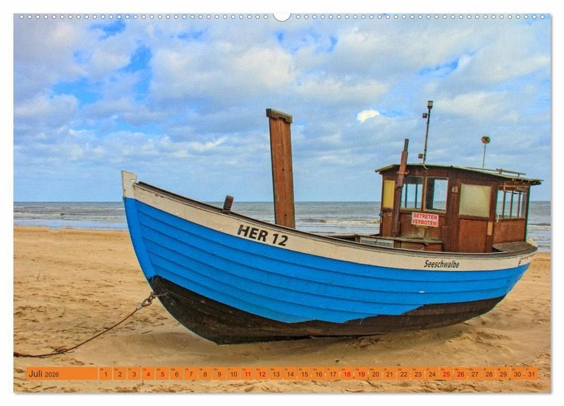 Juli: Der Heringsdorfer Fischkutter Seeschwalbe auf dem Strand des Kaiserbades