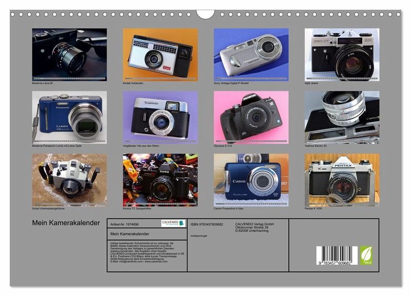 QUALITÄT - Hochwertiger Fotokalender mit 12 wunderschönen Motiven auf lichtbeständigem Bilderdruckpapier, robuste Spiralbindung mit Aufhängebügel.NACHHALTIG - deutliche Abfallreduzierung durch bedarfsgerechte Einzelstückfertigung, umweltfreundliches FSC-zertifiziertes Papier, Produktion in Deutschland, klimabewusste Logistik.PERFEKTES GESCHENK - Kalender für Freunde und Familie, für Kinder und Erwachsene, jung und alt, zu Weihnachten, Geburtstag oder zwischendurch.VIELFALT - Bildkalender in verschiedenen Formaten, z.B. DIN A5, DIN A4, DIN A3 sowie DIN A2. Ob Naturmotiv, Gemälde oder Fotos, ideal für ein persönliches Wohlfühlambiente.Alte und moderne Kameras gemeinsam in einem Wandkalender von Autor(in): Karin Strunge
