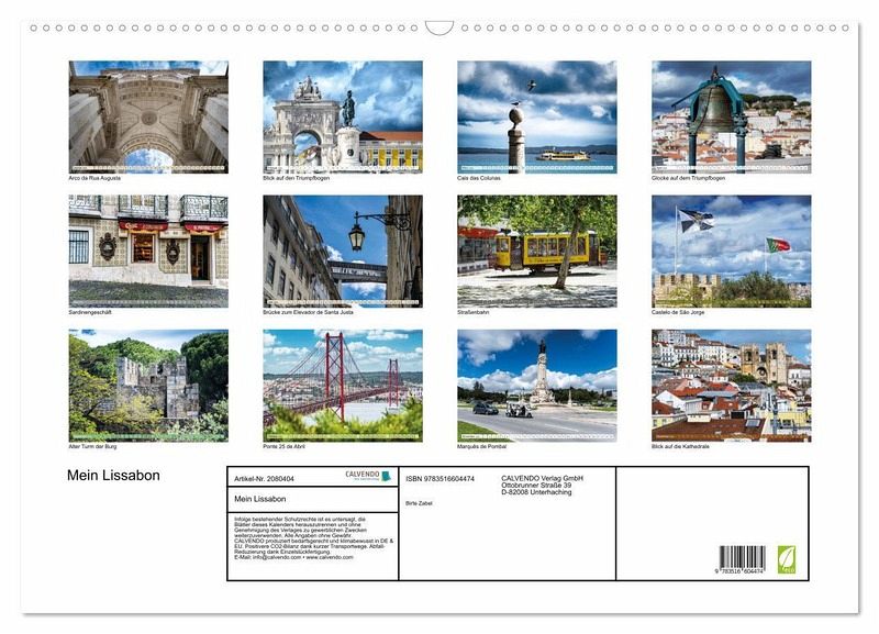 Entdecken Sie die faszinierende Schönheit Lissabons mit unserem einzigartigen Kalender! Jede Seite zeigt atemberaubende Fotografien der malerischen Stadt, ihrer bunten Häuser, historischen Sehenswürdigkeiten und lebendigen Straßen. Perfekt, um das ganze Jahr über ein Stück Lissabon in Ihrem Zuhause oder Büro zu haben. Ein tolles Geschenk für Liebhaber der Stadt oder für alle, die das besondere Flair Lissabons schätzen. Holen Sie sich jetzt Ihren Kalender und lassen Sie sich Monat für Monat von der Magie dieser wundervollen Stadt verzaubern!