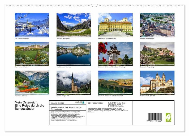 PREMIUM-LINIE - Brillanter Fotokalender mit 12 wunderschönen Motiven, Kunstdruck in Hochglanz in Museumsqualität.QUALITÄT - edle Materialien, stabile Rückwand mit 2 innovativen Einstecktaschen für eine optimale Präsentation an der Wand.NACHHALTIG - deutliche Abfallreduzierung durch bedarfsgerechte Einzelstückfertigung, umweltfreundliches FSC-zertifiziertes Papier, Produktion in Deutschland, klimabewusste Logistik.PERFEKTES GESCHENK - Kalender für Freunde und Familie, für Kinder und Erwachsene, jung und alt, zu Weihnachten, Geburtstag oder zwischendurch.Das zauberhafte Österreich in schönen Bildern von Autor(in): Elisabeth Stanzer