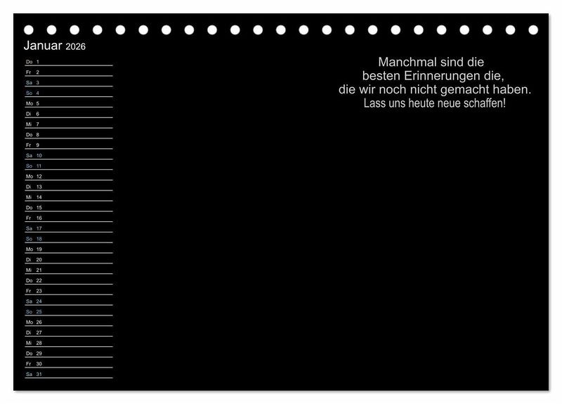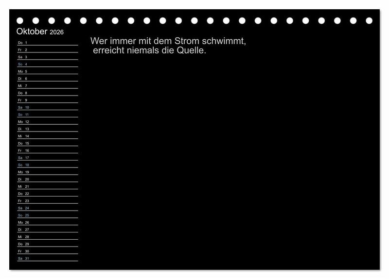 Zusätzlich bietet "Mein persönlicher Kalender" eine Sammlung von inspirierenden und motivierenden Sprüchen, die Sie durch das Jahr begleiten und jeden Tag aufs Neue ermutigen. Lassen Sie sich von diesen positiven Botschaften inspirieren und finden Sie Ihre tägliche Portion Motivation.