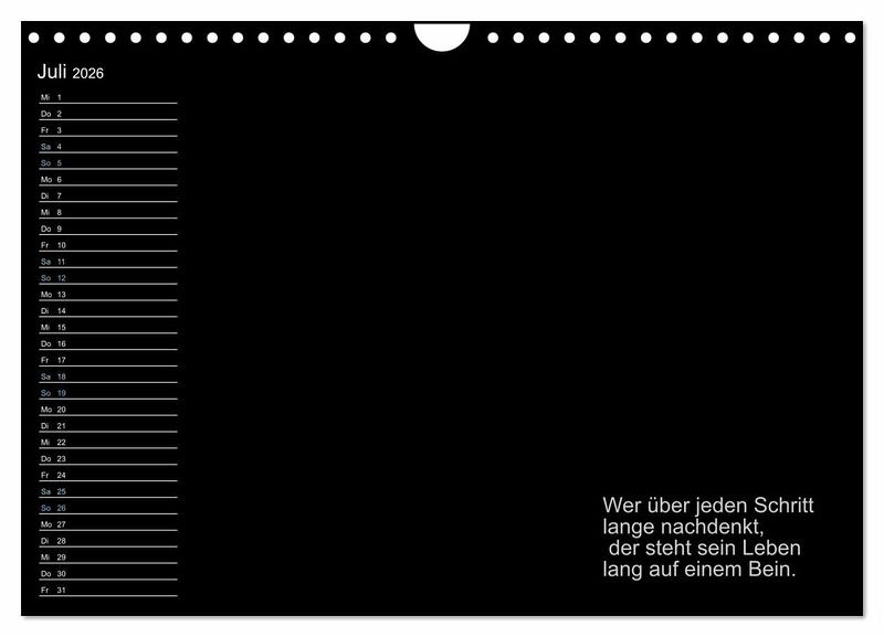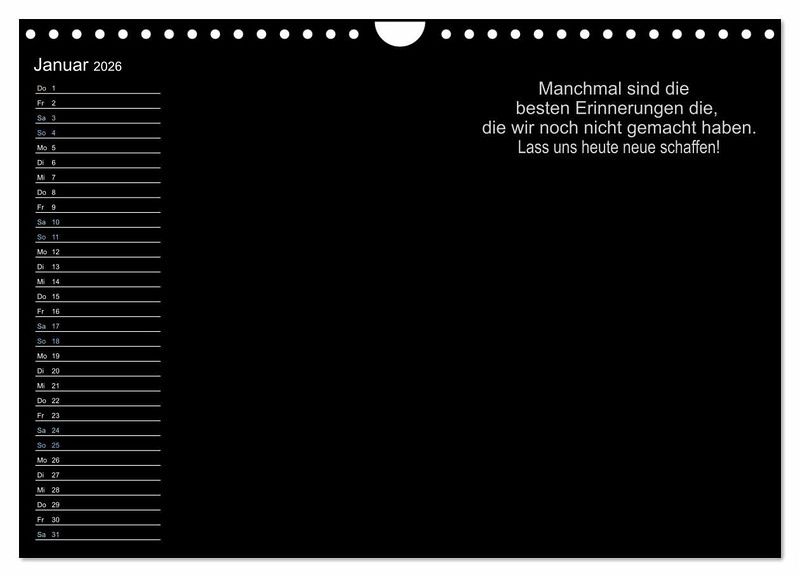 Zusätzlich bietet "Mein persönlicher Kalender" eine Sammlung von inspirierenden und motivierenden Sprüchen, die Sie durch das Jahr begleiten und jeden Tag aufs Neue ermutigen. Lassen Sie sich von diesen positiven Botschaften inspirieren und finden Sie Ihre tägliche Portion Motivation.