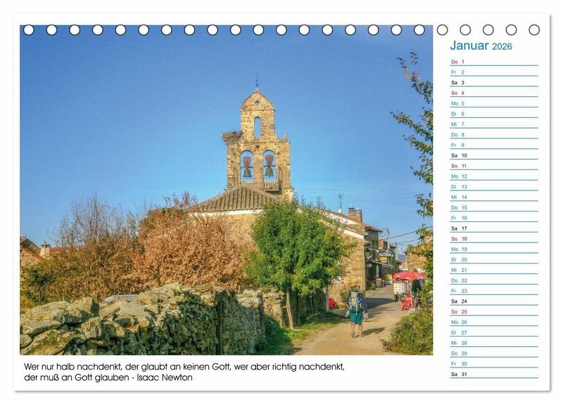 Ich wusste nicht warum, ich wusste nur, dass ich laufen musste! So wie hunderttausende Pilger, welche der Jakobsweg dazu aufgerufen hat. Mit diesem Kalender können Sie einige besondere Momente selbst erleben. Buen Camino und Ultreia!