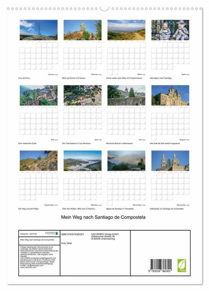 QUALITÄT - Hochwertiger Fotokalender mit 12 wunderschönen Motiven auf lichtbeständigem Bilderdruckpapier, robuste Spiralbindung mit Aufhängebügel.NACHHALTIG - deutliche Abfallreduzierung durch bedarfsgerechte Einzelstückfertigung, umweltfreundliches FSC-zertifiziertes Papier, Produktion in Deutschland, klimabewusste Logistik.PERFEKTES GESCHENK - Kalender für Freunde und Familie, für Kinder und Erwachsene, jung und alt, zu Weihnachten, Geburtstag oder zwischendurch.VIELFALT - Bildkalender in verschiedenen Formaten, z.B. DIN A5, DIN A4, DIN A3 sowie DIN A2. Ob Naturmotiv, Gemälde oder Fotos, ideal für ein persönliches Wohlfühlambiente.Mit diesem Kalender können Sie auch nach Santiago de Compostela wandern. von Autor(in): Andy Tetlak