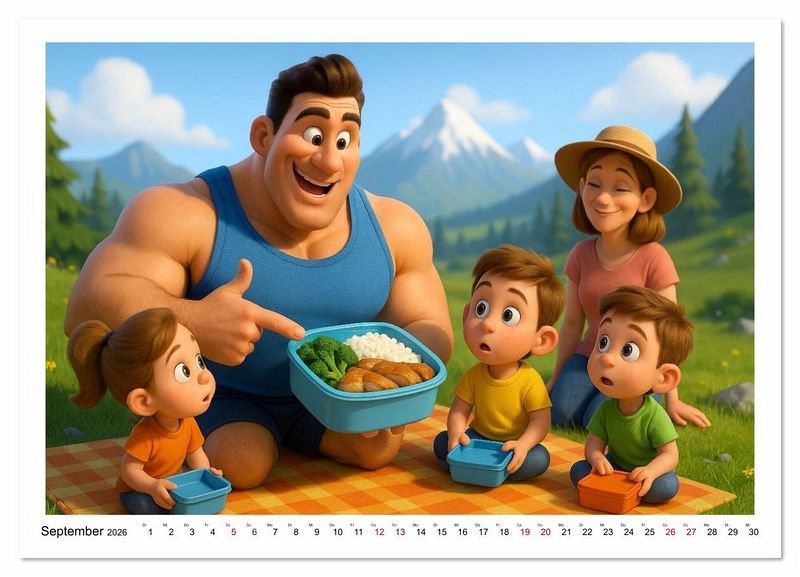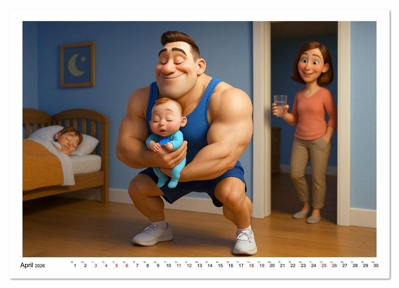 Dieser Kalender ist ein liebevoll überzeichneter Familienkalender, der Alltag und Fitness mit einem Augenzwinkern vereint. Alle Illustrationen wurden mit Hilfe künstlicher Intelligenz im charmanten 3D-Stil erschaffen - witzig, detailreich und voller Herz. Ob im Fitnessstudio, beim Picknick oder auf der Kirmes: Jeder Monat erzählt eine kleine Szene aus dem turbulenten Leben eines sportliebenden Vaters und seiner Familie. Ideal zum Schmunzeln, Verschenken und Wiedererkennen.