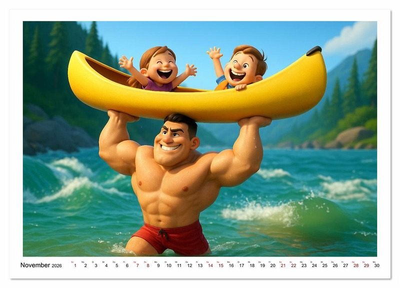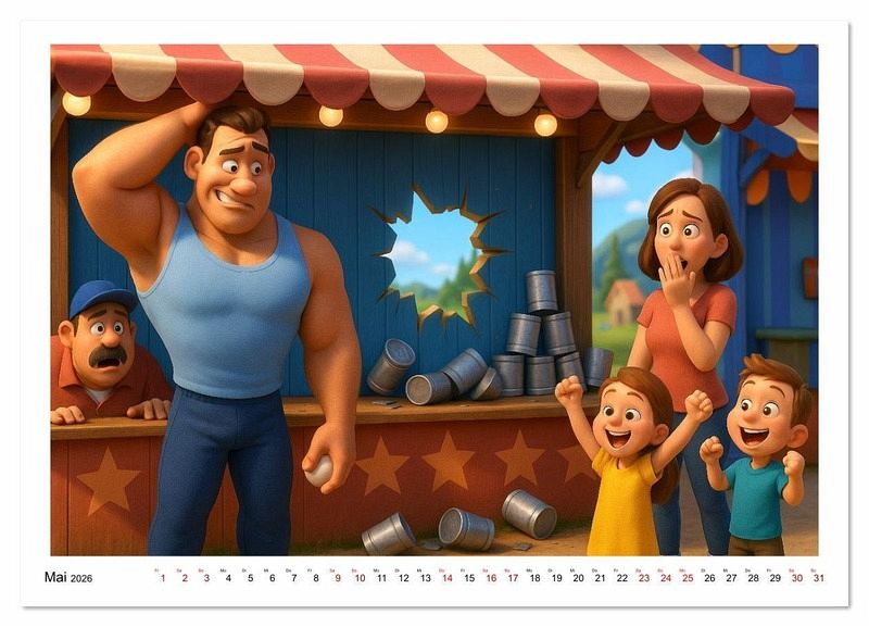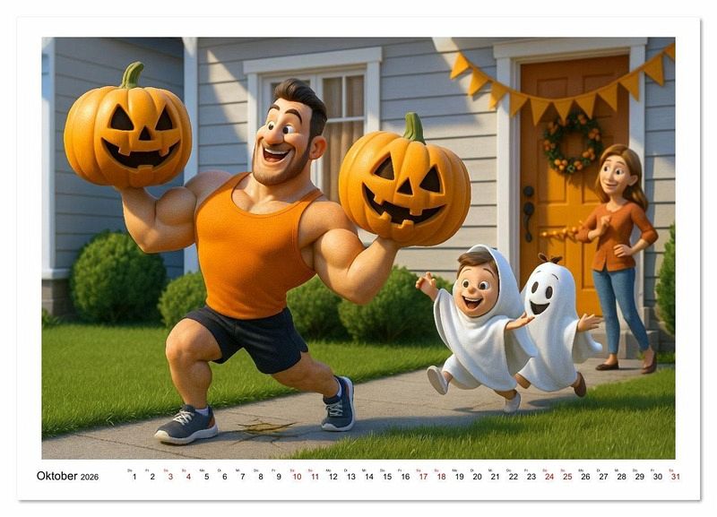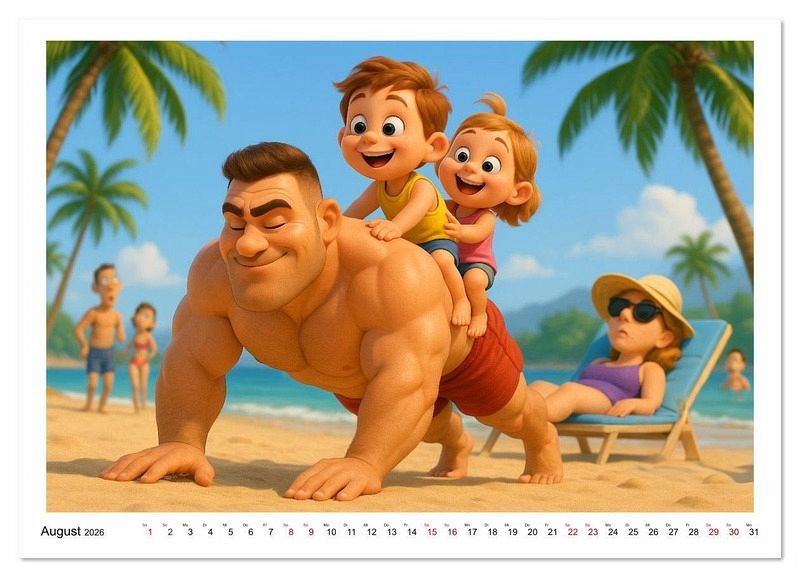Dieser Kalender ist ein liebevoll überzeichneter Familienkalender, der Alltag und Fitness mit einem Augenzwinkern vereint. Alle Illustrationen wurden mit Hilfe künstlicher Intelligenz im charmanten 3D-Stil erschaffen - witzig, detailreich und voller Herz. Ob im Fitnessstudio, beim Picknick oder auf der Kirmes: Jeder Monat erzählt eine kleine Szene aus dem turbulenten Leben eines sportliebenden Vaters und seiner Familie. Ideal zum Schmunzeln, Verschenken und Wiedererkennen.
