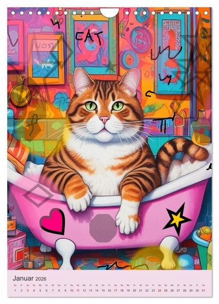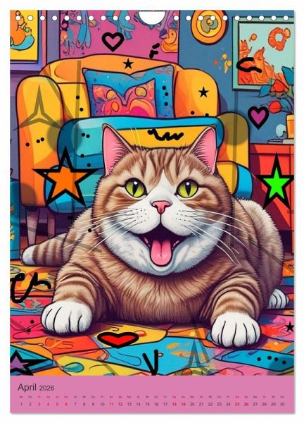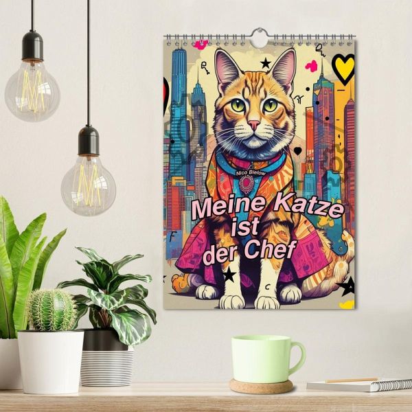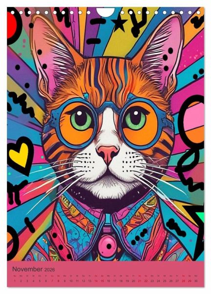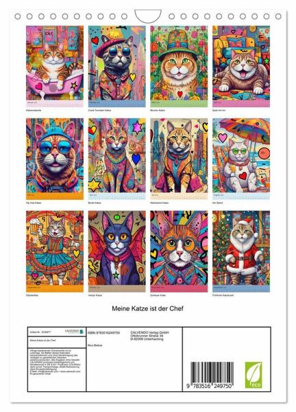 In diesem Kalender sind zum Teil mit KI 12 lustige und farbenfrohen Katzen entstanden. Der Hamburger Pop Art Künstler Nico Bielow hier seiner Fantasie freien lauf gelassen.