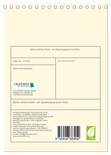 QUALITÄT - Hochwertiger Fotokalender mit 12 wunderschönen Motiven auf lichtbeständigem Bilderdruckpapier, robuste Spiralbindung.NACHHALTIG - deutliche Abfallreduzierung durch bedarfsgerechte Einzelstückfertigung, umweltfreundliches FSC-zertifiziertes Papier, Produktion in Deutschland, klimabewusste Logistik.PERFEKTES GESCHENK - Kalender für Freunde und Familie, für Kinder und Erwachsene, jung und alt, zu Weihnachten, Geburtstag oder zwischendurch.VIELFALT - Bildkalender in verschiedenen Formaten, z.B. DIN A5, DIN A4, DIN A3 sowie DIN A2. Ob Naturmotiv, Gemälde oder Fotos, ideal für ein persönliches Wohlfühlambiente.Ein Wien-Erlebnis der besonderen Art! von Autor(in): Karl Heindl