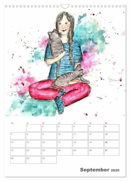 "Meine Samtpfötchen und ich" ist eine liebevoll gestaltete Welt voller Zärtlichkeit und Freundschaft. Jeder Monat zeigt ein liebevoll gestaltetes Aquarell eines Mädchens und ihrer beiden Fellfreunde. Tauchen Sie in eine verzaubernde Atmosphäre von gemeinsamen Momenten, spielerischem Miteinander und purer Zuneigung. Ein liebevoller Begleiter für kleine und große Katzenliebhaber, die die Magie der Katzen und die besondere Verbundenheit zwischen Mensch und Tier nachempfinden können.