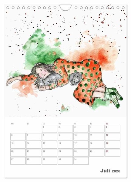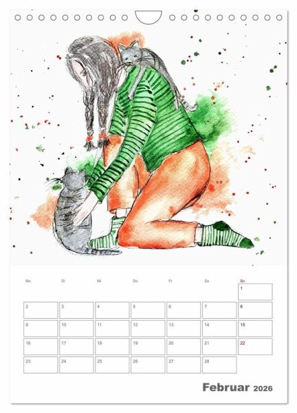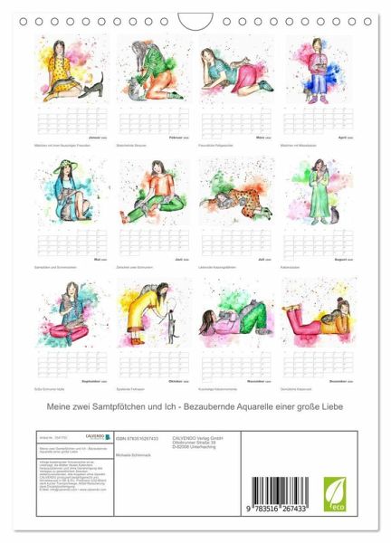"Meine Samtpfötchen und ich" ist eine liebevoll gestaltete Welt voller Zärtlichkeit und Freundschaft. Jeder Monat zeigt ein liebevoll gestaltetes Aquarell eines Mädchens und ihrer beiden Fellfreunde. Tauchen Sie in eine verzaubernde Atmosphäre von gemeinsamen Momenten, spielerischem Miteinander und purer Zuneigung. Ein liebevoller Begleiter für kleine und große Katzenliebhaber, die die Magie der Katzen und die besondere Verbundenheit zwischen Mensch und Tier nachempfinden können.
