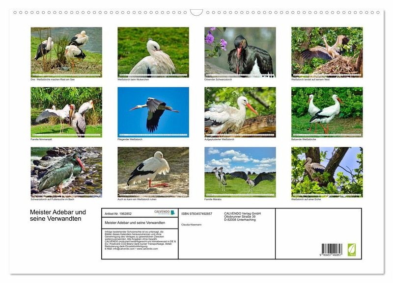 QUALITÄT - Hochwertiger Fotokalender mit 12 wunderschönen Motiven auf lichtbeständigem Bilderdruckpapier, robuste Spiralbindung mit Aufhängebügel.NACHHALTIG - deutliche Abfallreduzierung durch bedarfsgerechte Einzelstückfertigung, umweltfreundliches FSC-zertifiziertes Papier, Produktion in Deutschland, klimabewusste Logistik.PERFEKTES GESCHENK - Kalender für Freunde und Familie, für Kinder und Erwachsene, jung und alt, zu Weihnachten, Geburtstag oder zwischendurch.VIELFALT - Bildkalender in verschiedenen Formaten, z.B. DIN A5, DIN A4, DIN A3 sowie DIN A2. Ob Naturmotiv, Gemälde oder Fotos, ideal für ein persönliches Wohlfühlambiente.Unterschiedliche Störche im Portrait von Autor(in): Claudia Kleemann