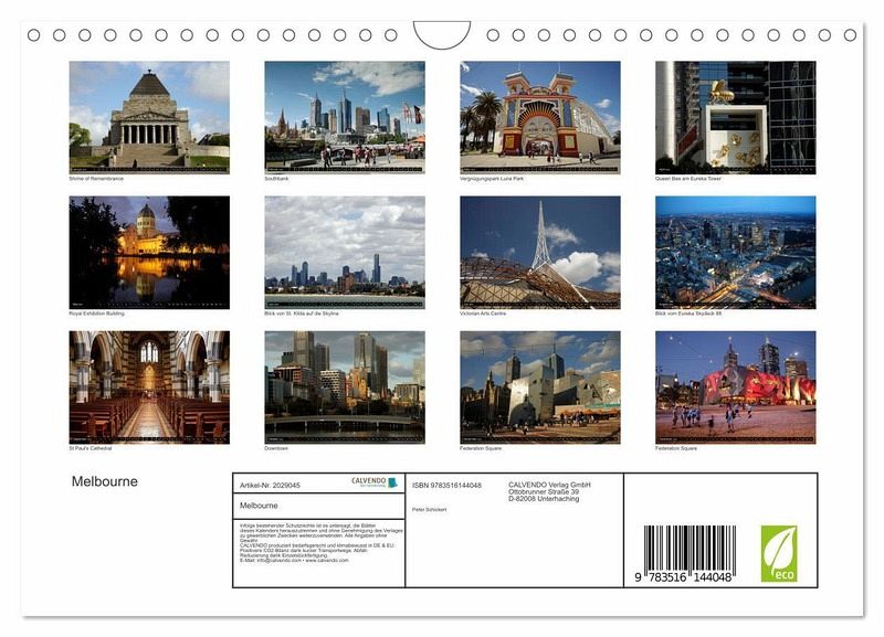 Die sehenswerte Hauptstadt des Bundesstaates Victoria und zweitgrößte Stadt des australischen Kontinents können Sie in diesem Kalender des Reisefotografen Peter Schickert entdecken. 13 faszinierende Fotos aus einer der schönsten Städte des 5. Kontinents.