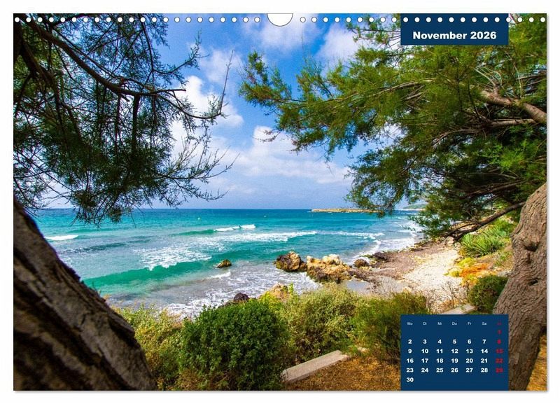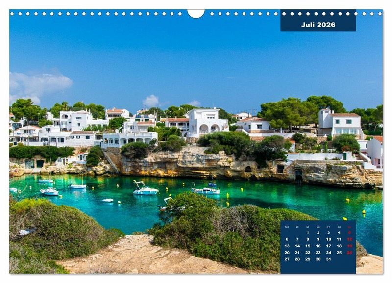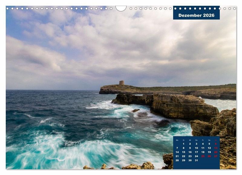 Menorca oft bezeichnet unterschätzt als kleine Schwester Mallorcas. Menorca bieten zerklüftete Küstenlandschaften mit wilden Wellen und gleichzeitig einsame Buchte mit türkisblauen, glasklaren Wasser. Dieser Kalender zeigt verschiedene Orte dieser oft unterschätzten Insel im Mittelmeer.