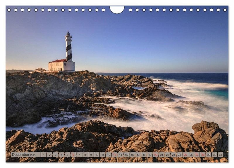 Often forgotten, but maybe that was luck for the island Menorca. No big hotels were built, here you can find nature pure, lonely coves, historic villages and majestic lighthouses. This photographic calendar takes you on a round tour on this beautiful island in the Mediterranean Sea.