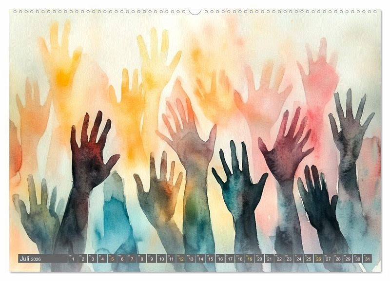 Kalender dazu an, die Werte der Menschenrechte zu reflektieren und sich für eine gerechtere Welt einzusetzen - ein inspirierender Begleiter, der Kunst und Engagement vereint. Die Bilder sind mit Unterstützung von KI entstanden und wurden kunstvoll in Szene gesetzt.